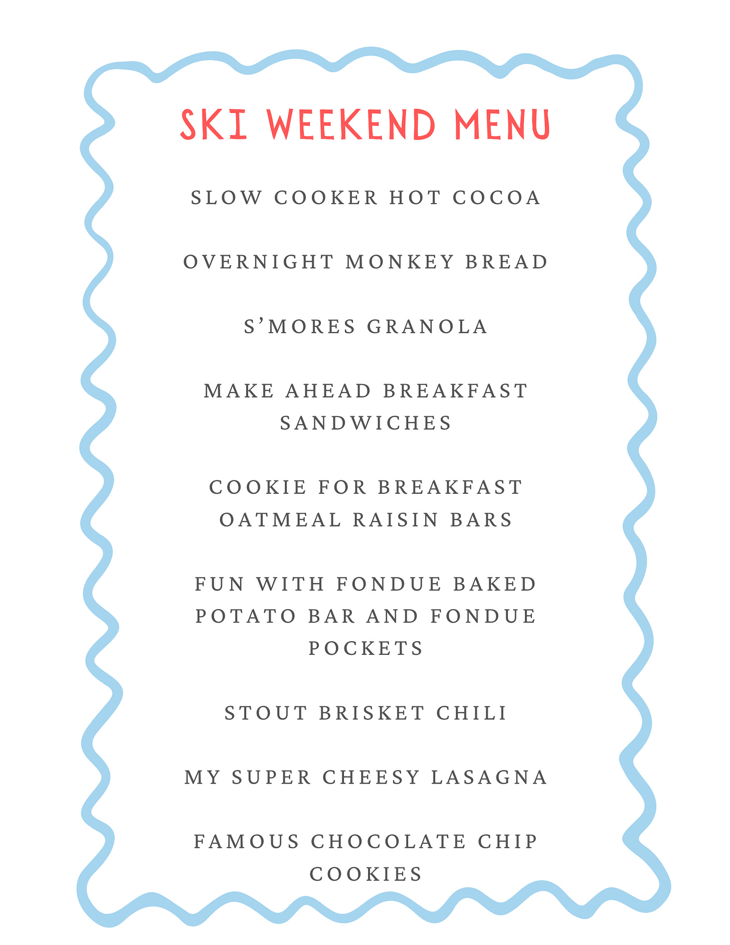Keep reading for more recipes. I’m sharing my famous s’mores granola, my slow cooker hot cocoa and my overnight monkey bread. Subscribe below to join my monthly menu club, where you will receive themed recipes that make every month feel like a celebration!